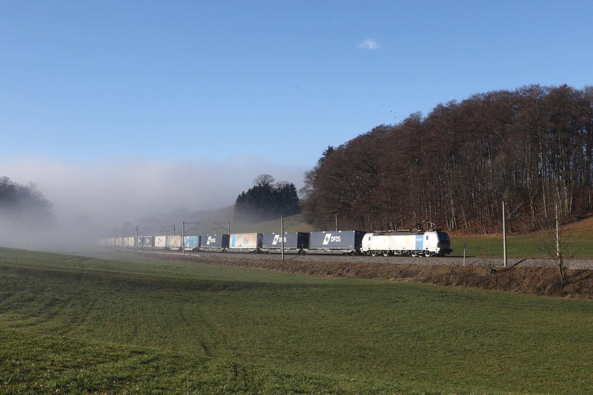 6193 890 von "ECCO-Rail" war mit einem "EKOL-KLV" am 13. Dezember 2025 bei Axdorf im Chiemgau in Richtung Salzburg unterwegs.