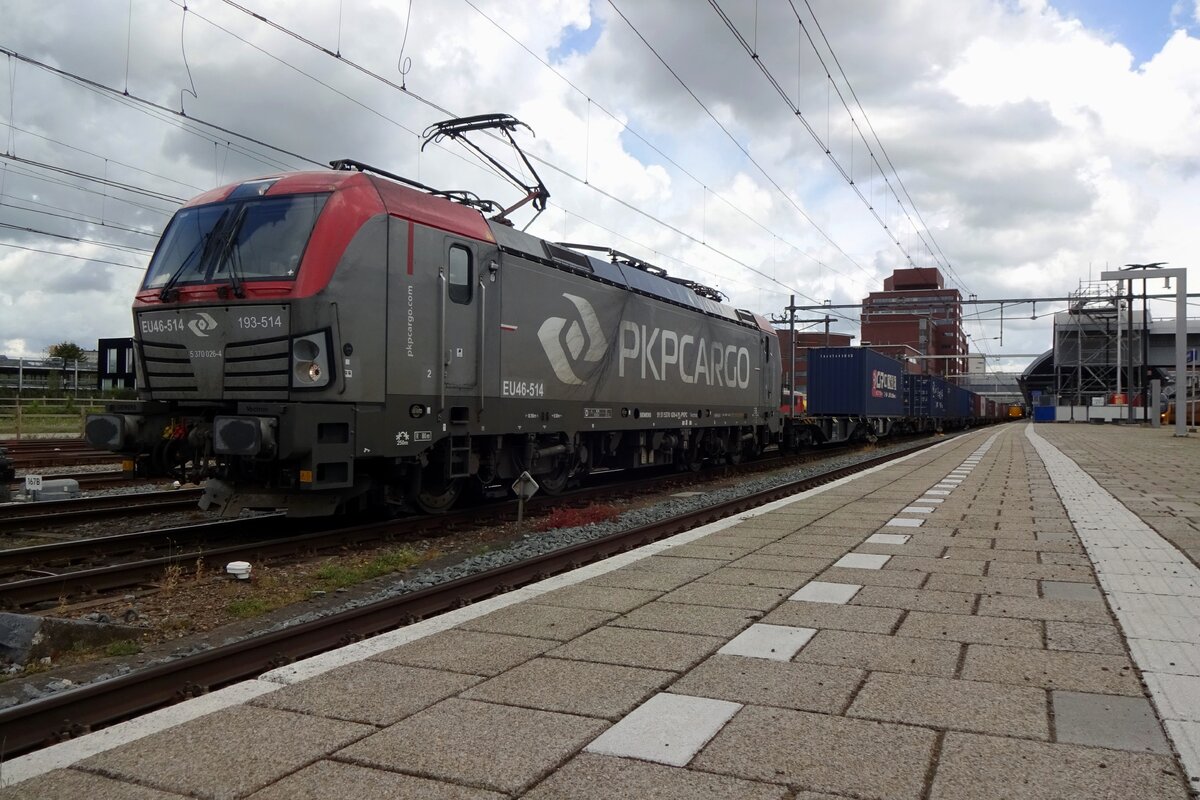 PKP Cargo EU46-514 treft am 25 Mai 2021 in Amersfoort ein mit ein aus China kommender KLV.