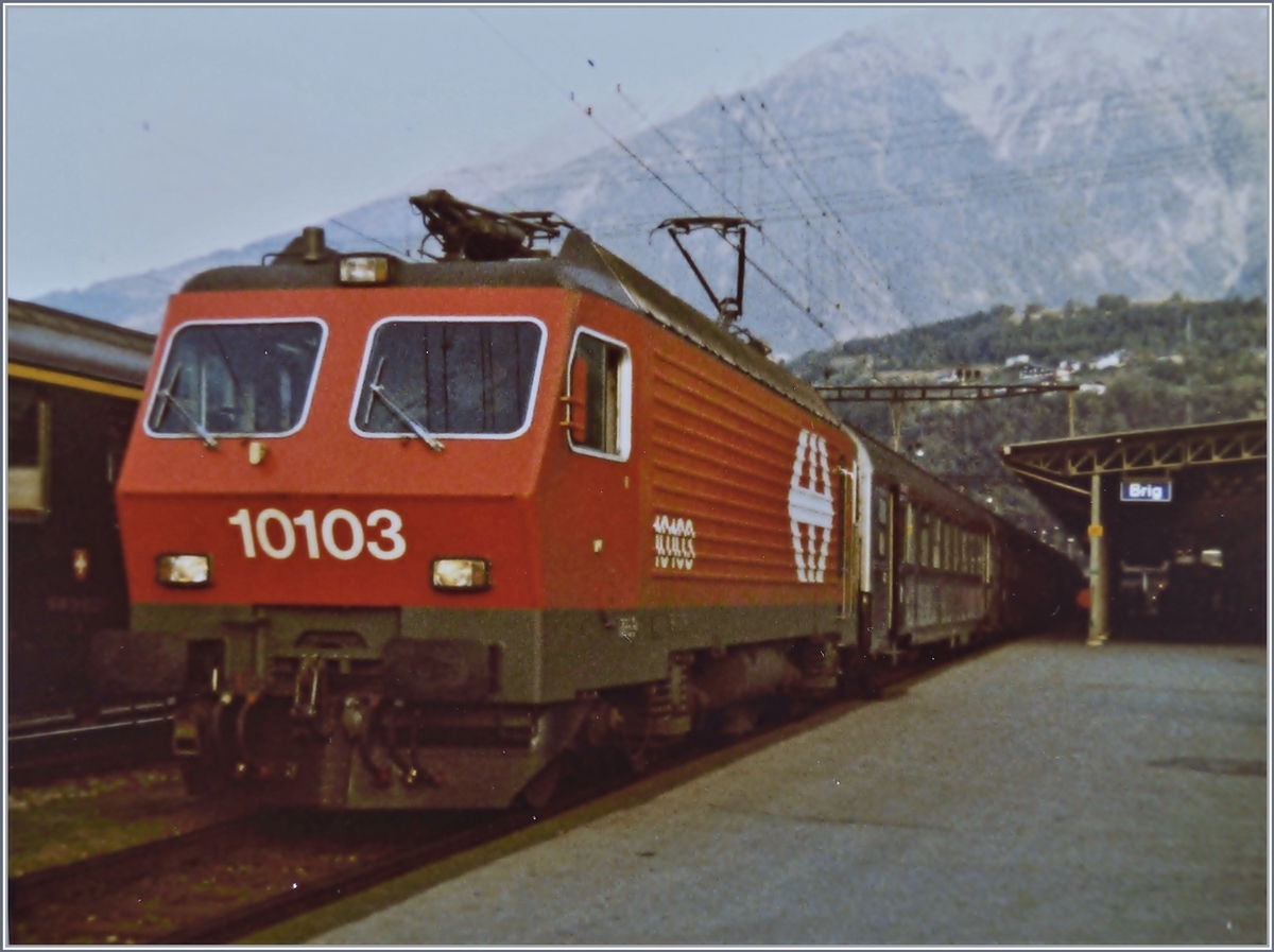 Die SBB Re 4/4 IV 10104 mit ihrem Schnellzug beim Halt in Vevey.