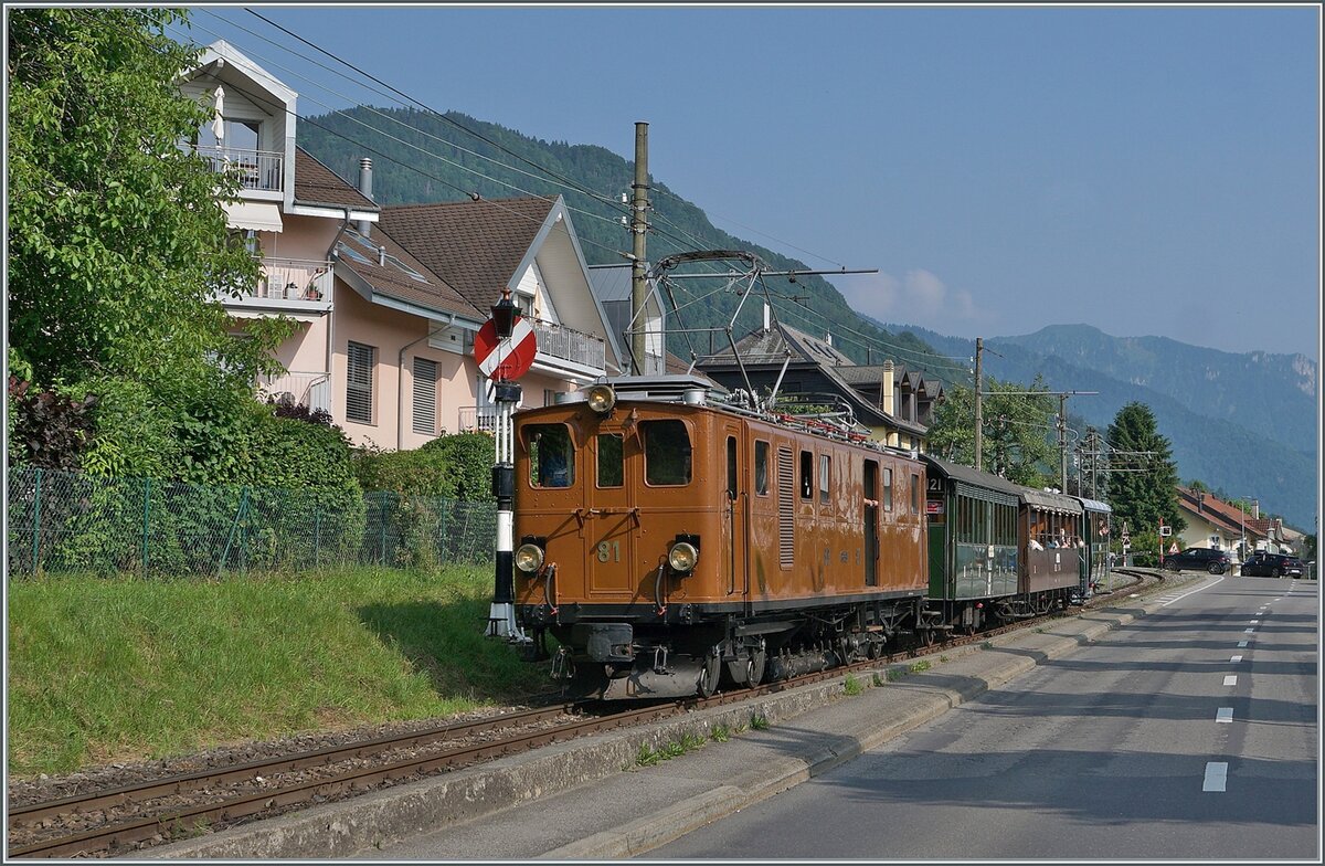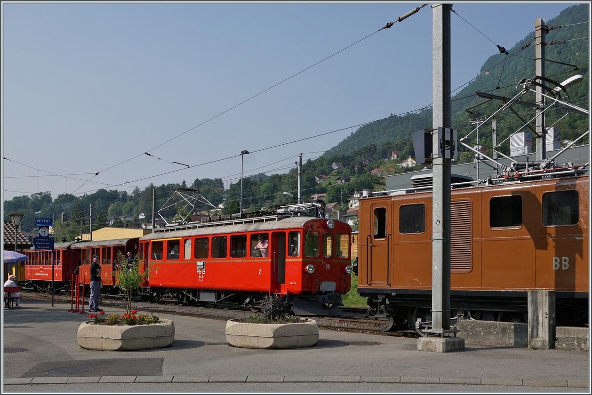 Die LEB G 3/3 5 und die BFD HG3/4 5 (beide Blonay Chamby Bahn) in Chaulin