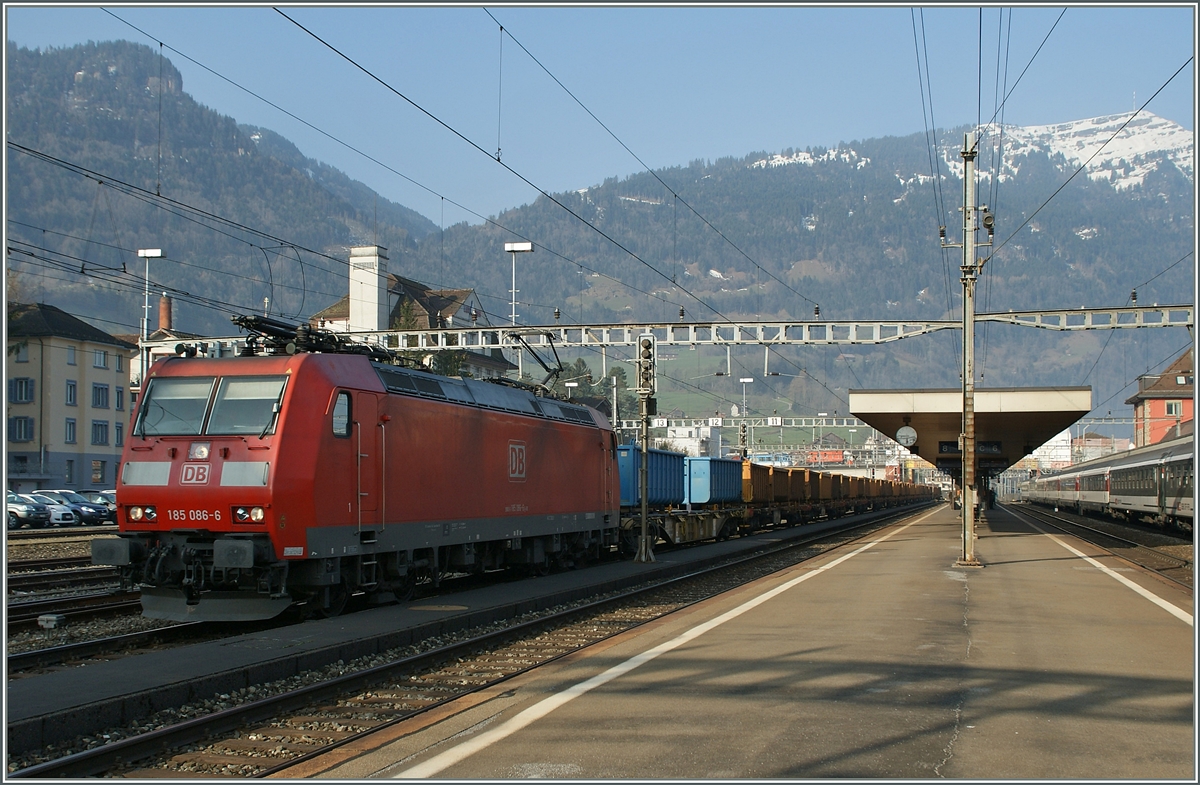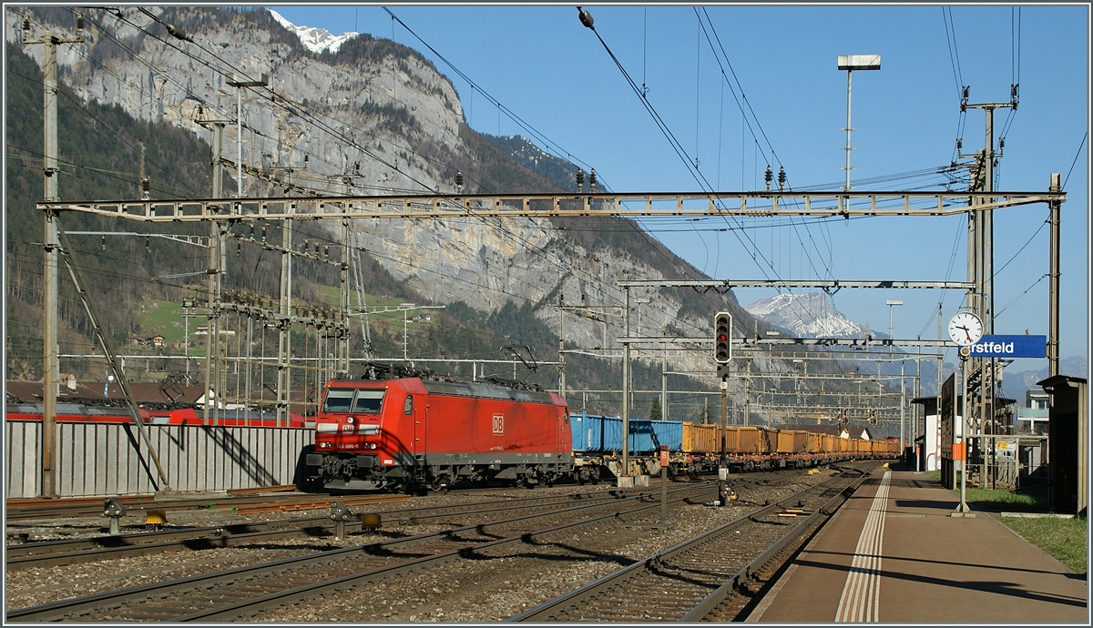 Die SBB Ae 6/6 mit einem Güterzug im DB BAhnhof Basel Bad. Bf (Badischer Bahnhof).