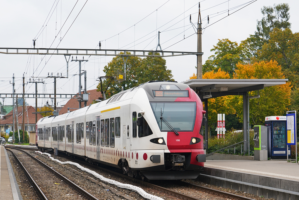 Der BDe 4/4 II 201 "Burgdorf" des Vereins Pendelzug Mirage (VPM) fährt am 11.10.2025 mit dem Bierzug aus dem Bahnhof Murten aus. Am 14.09.1966 wurde er als als BDe 4/4 82 an die Südostbahn geliefert. Diese Sonderfahrt der Bier Arena Murten startete in Murten und führte über Payerne, Yverdon, Neuchatel und Lyss zurück zum Ausgangspunkt.