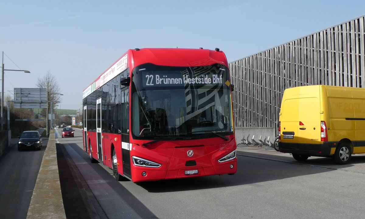 (285'308) - Bernmobil, Bern - Nr. 104/BE 137'104 - eIrizar am 7. März 2026 beim Bahnhof Bern Brünnen Westside