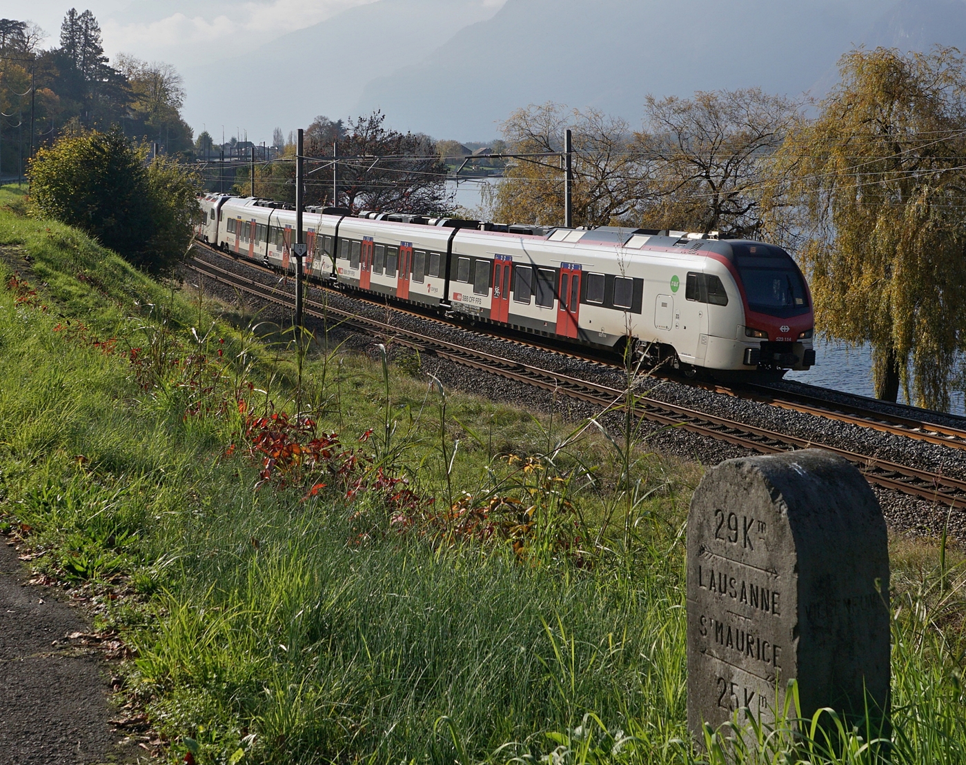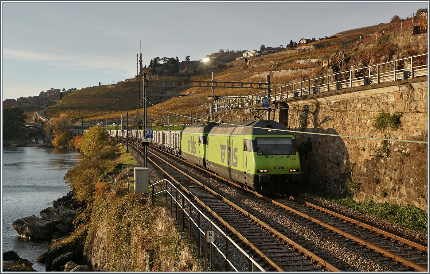 Die SBB Rohnebrücke zwischen St-Maurice und Bex von der Walliser Seite her gesehen mit der SBB Re 4/4 II 11243 mit einem Güterzg auf der Fahrt Richtung Wallis.