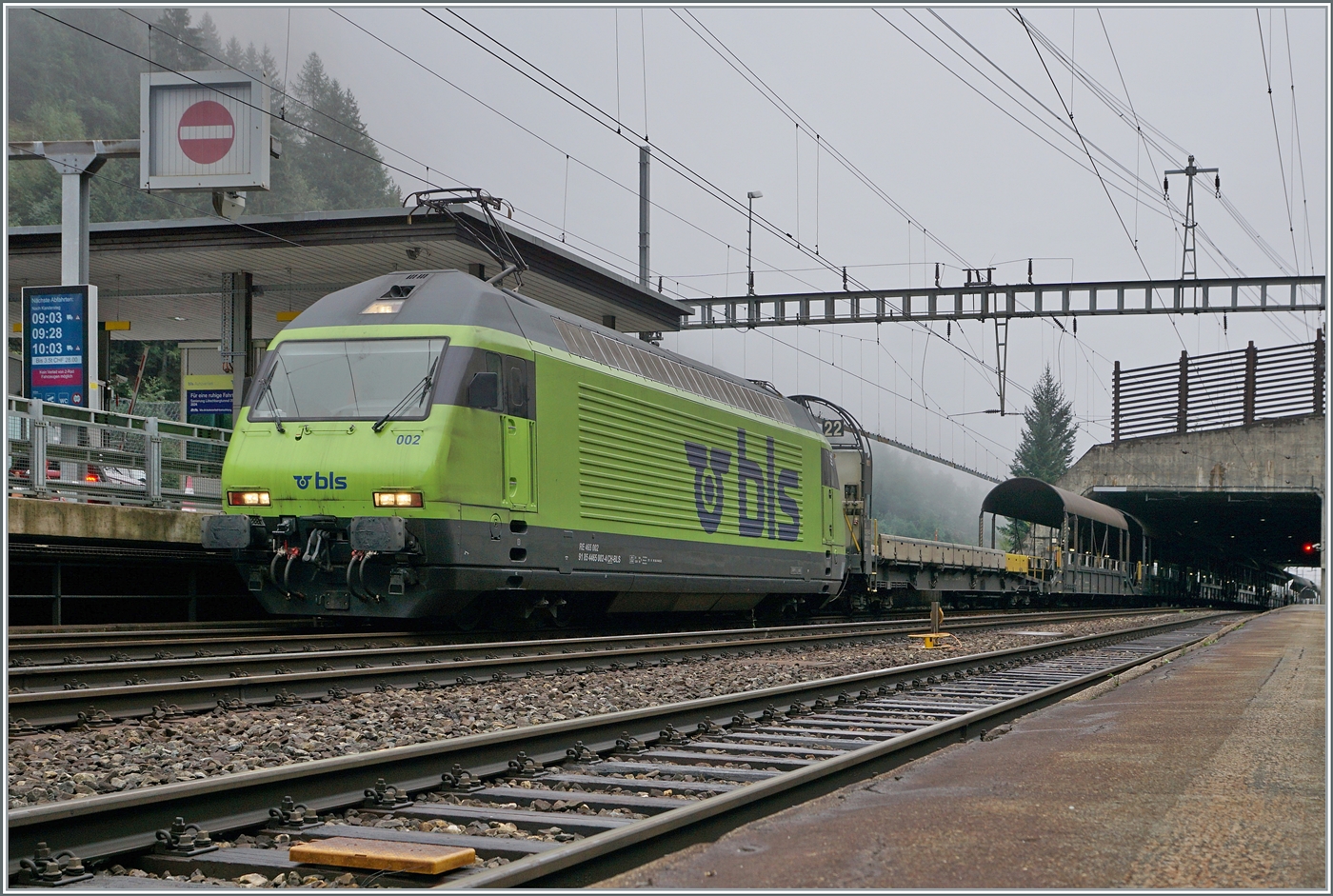 Die MOB Ge 4/4 8001 hat den GoldenPass Express GPX 4065 von Montreux nach Zweisimmen gezogen, wo die nun die BLS Re 465 011 übernimmt.