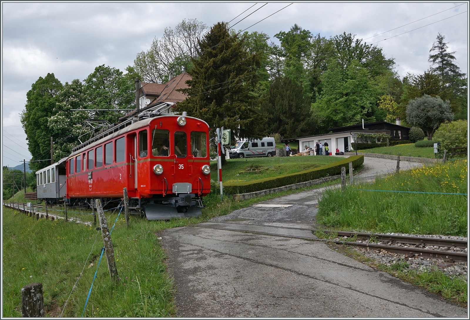 Die Selbstfahrende Dampfschneeschleuder R 1052 (ex Berninabahn) BB R 1052, ex RhB R 14, ex RhB Xrot d 9214), der Museumsbahn Blonay-Chamby, hier am 27.05.2023 auf dem Museums-Areal der (BC) in Chaulin.