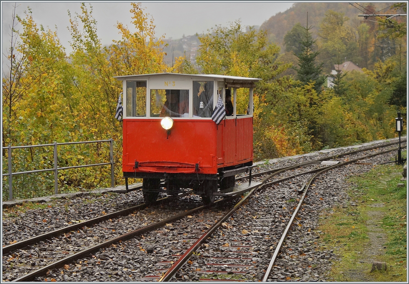 La DER de la Saison / Das Saison Ende der Blonay Chamby Bahn 2025 - Seit einigen Jahren zeigt die Blonay Chamby Bahn zum Saison Ende mit einem verdichteten Fahrplan noch einmal ihre herrlichen Fahrzeuge im Einsatz: Mein Bild-Farvorit ist dieses Foto, welches neben dem RhB ABe 4/4 I 35 an der Spitze des Riviera Belle Epoque Zuges am Schluss die prächtige RhB Ge 4/4 81 auf der Fahrt von Chaulin nach Vevey als Zug 358152 kurz vor Blonay zeigt. (Beide Triebfahrzeuge sind Eigenturm der Blonay-Chamby Bahn.) 26. Oktober 2025