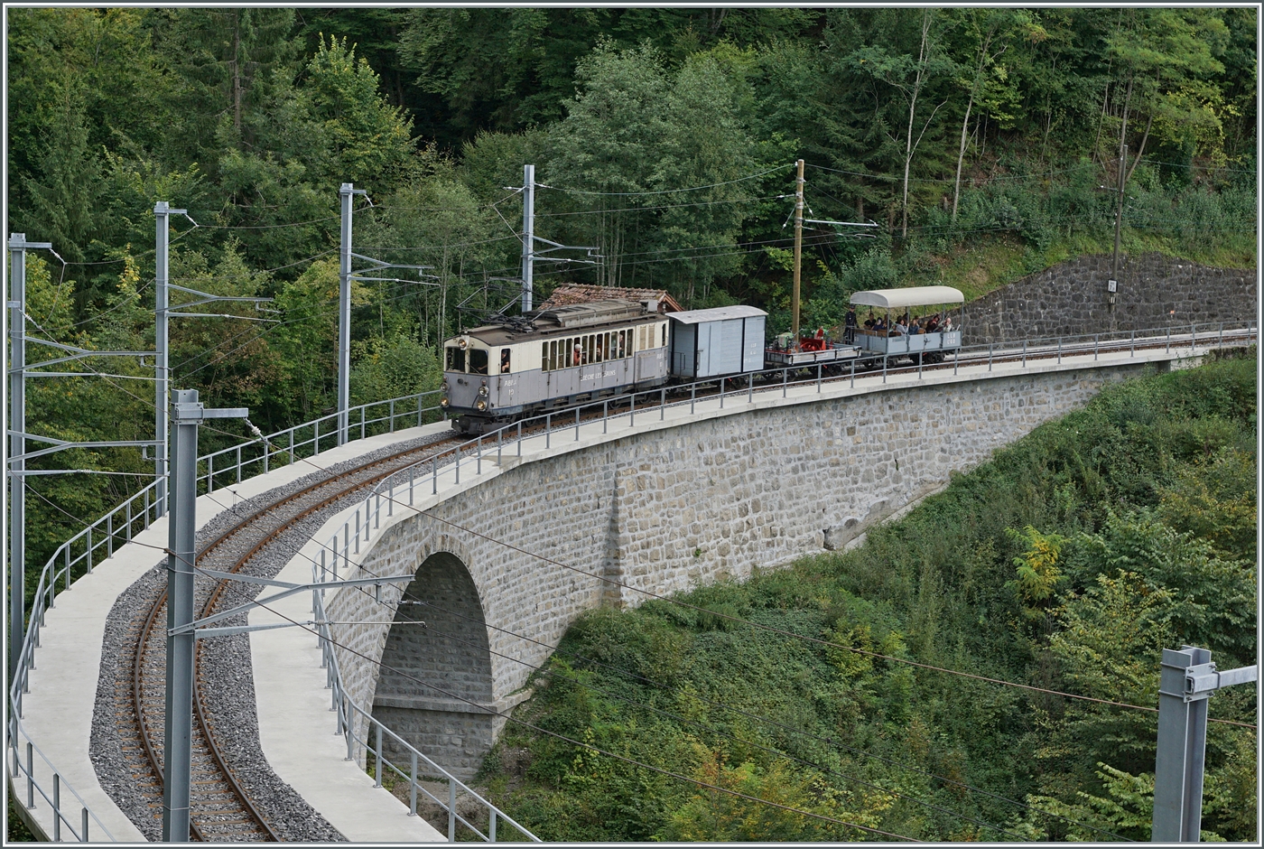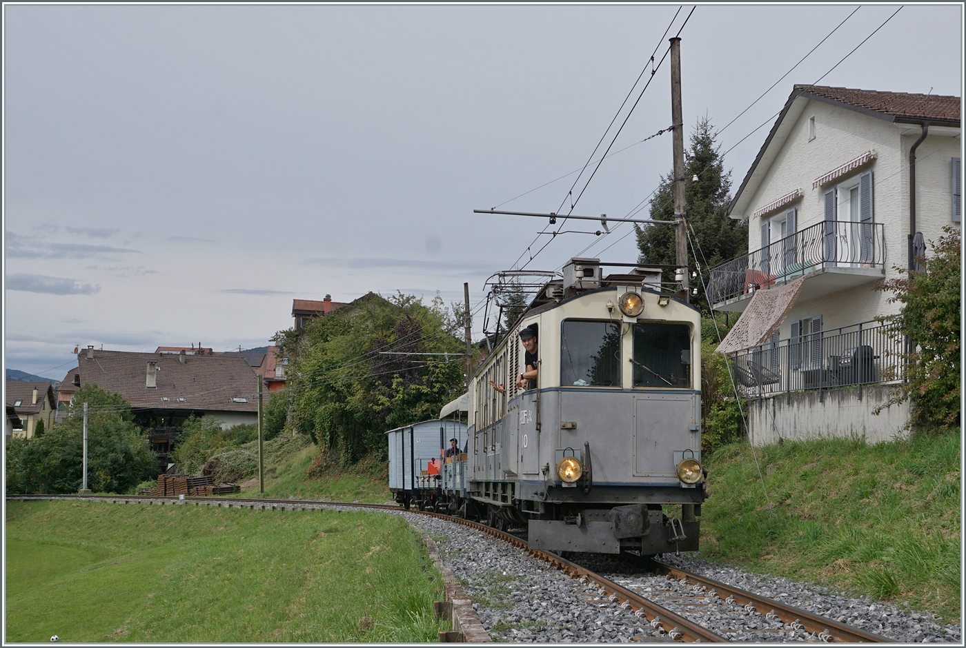 Der FZe 6/6 2002 (letzte Bezeichnung im Betriebsdienst der MOB: DZe 6/6) in Chaulin bei der B-C.