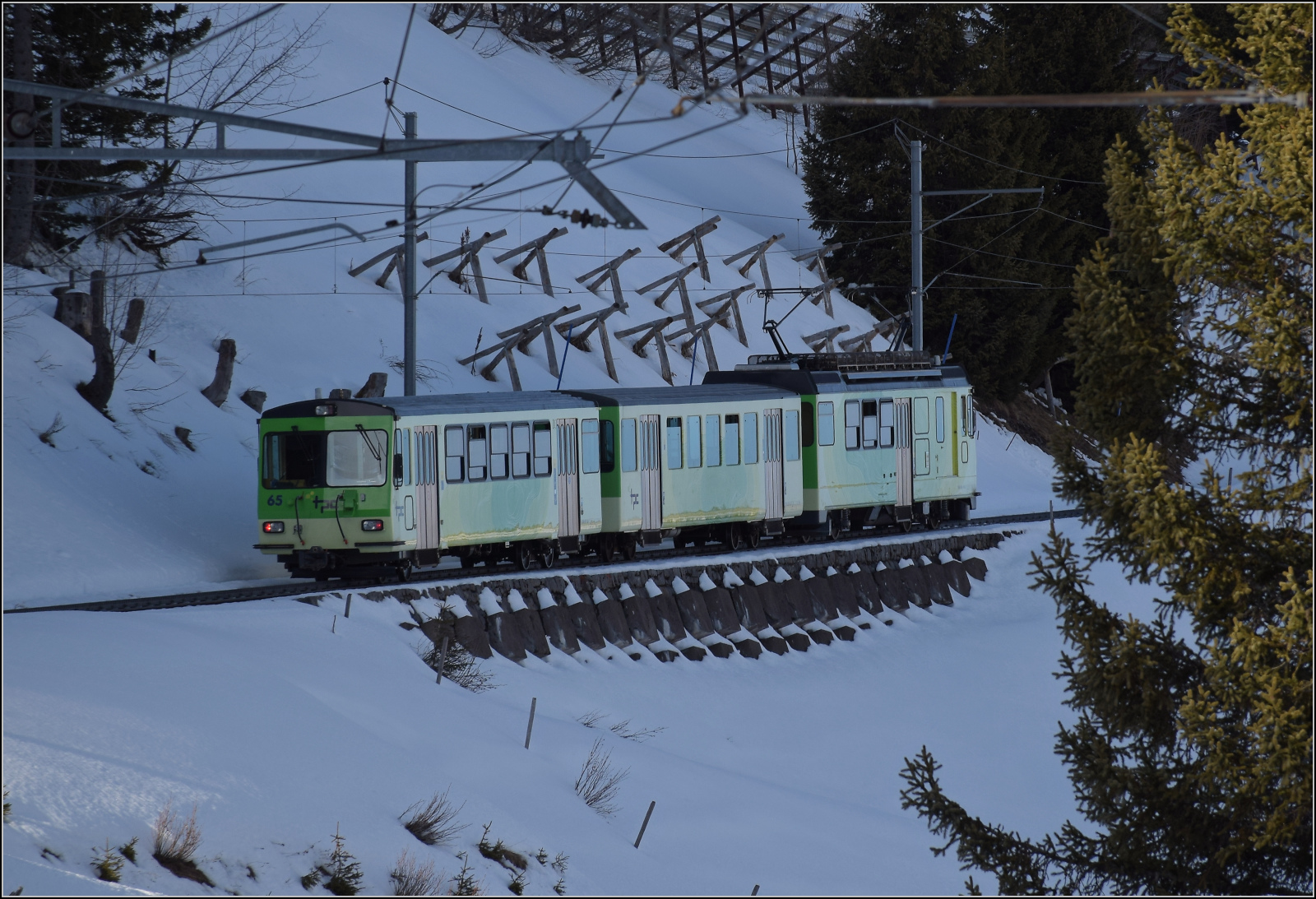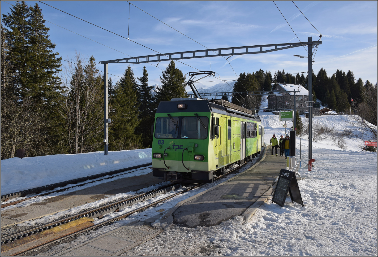 Entschuldigung, dass ich abschweife. Aber bei diesem Blick auf Europas größten Hügel direkt vom Bahnsteig der BVB kann man schon mal ins Schwärmen kommen und so ein Bahnsteig ist doch schon Bahnbezug, oder? Links unten sieht man das sehr schlechte Wetter in Italien, das uns gottseidank nicht belästigte, aber Italien einige Unwetter bescherte. Bouquetins, Januar 2026.