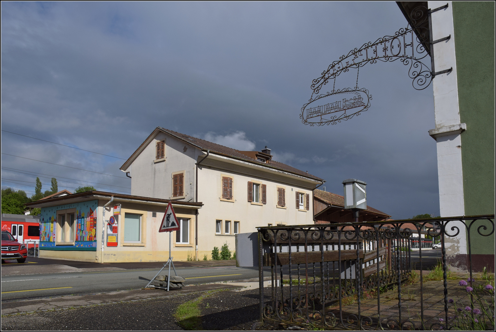 Der CJ Bt 922 und der RBDe 566 222 warten in Porrentruy auf die Abfahrt nach Bonfol.
