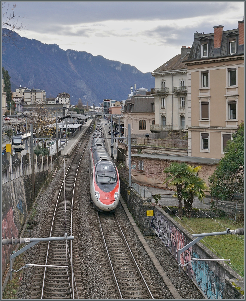 Während die RoLa von Freiburg nach Novara schon ausfährt und somit für eine paar Minuten den südlichen Bahnhofskopf blockiert, muss der ETR 610 sich auf die Abfahrt nach Milano gedulden.