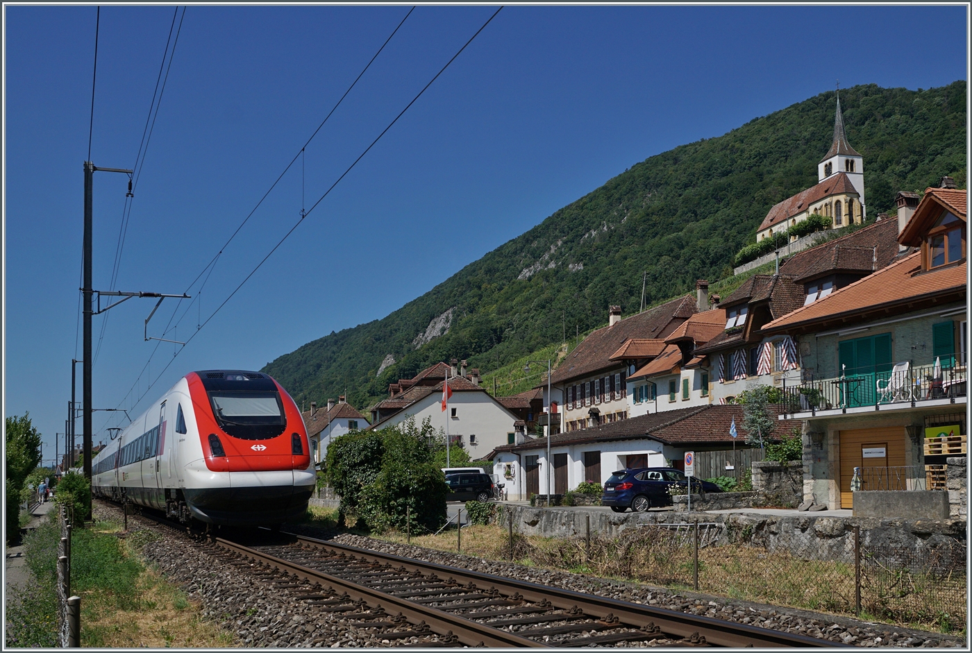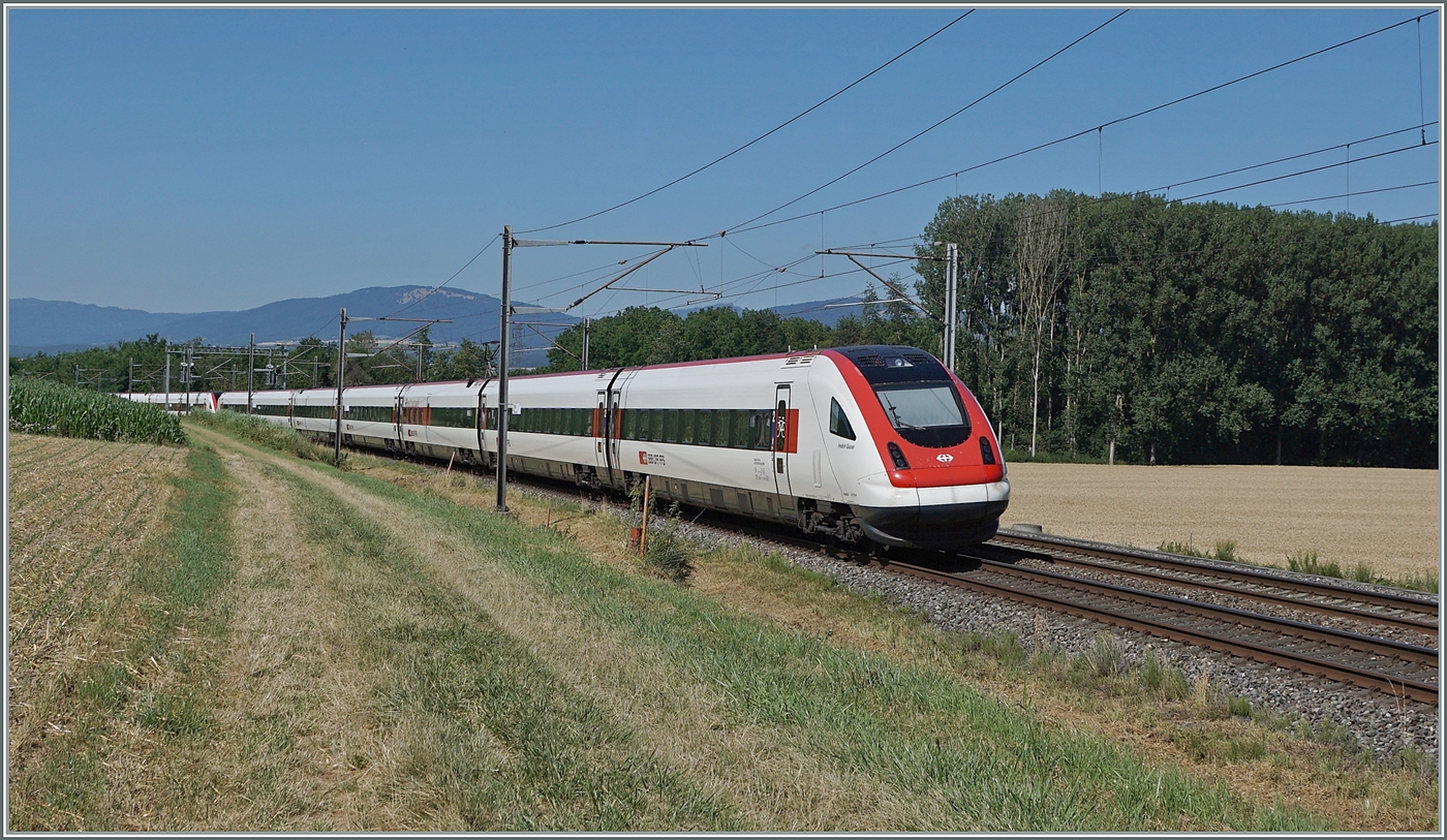 Im Bild ein SBB ICN auf der Fahrt von Genève - Aéroport nach Rorschach kurz vor Wanzenwil, im Hintergrund der Jura.