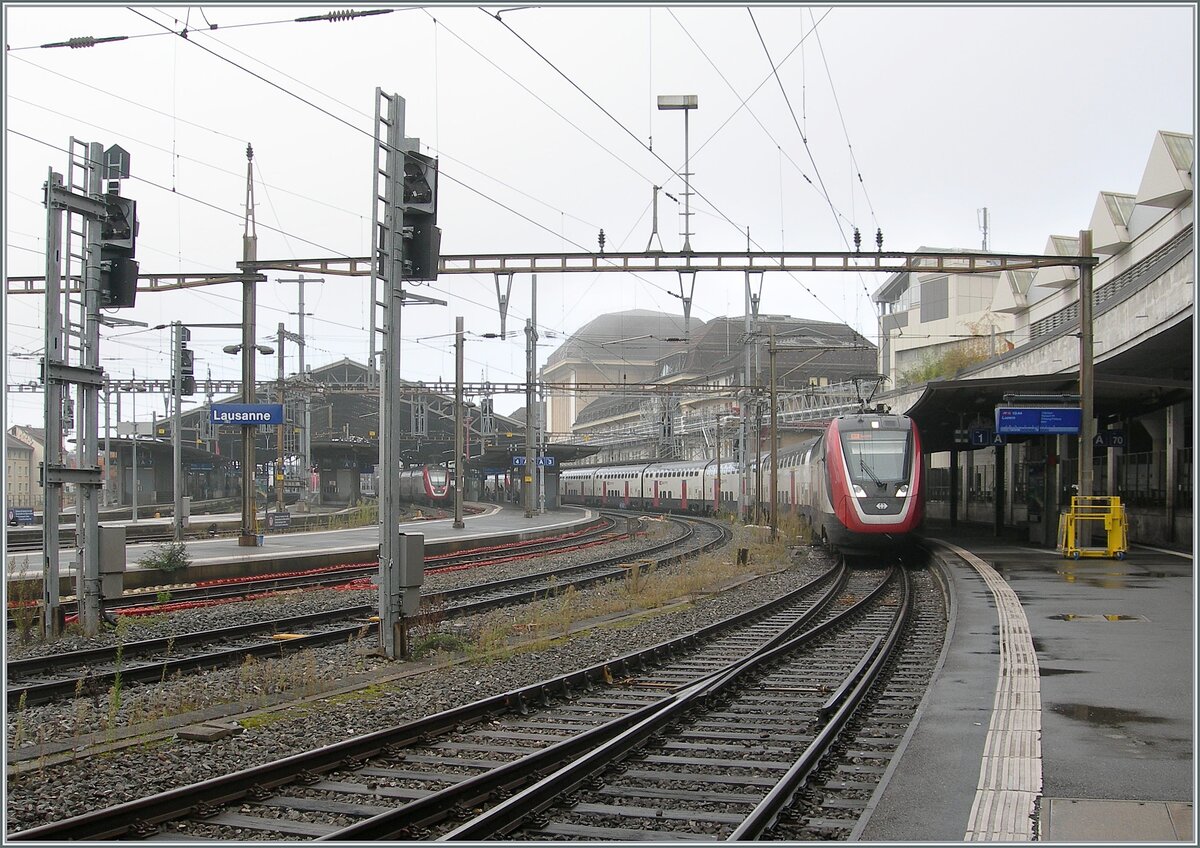 Der SBB RABDe 502 007 (94 85 0 502 007-3 SBB-CH) wartet in Vevey auf die Weiterfahrt nach Lausanne. Zur Zeit verkehren auf der Strecke kein Twindexx, aber da das Herstellerwerk in Villeneuve nicht weit ist, sind hin und wieder Twindexx hierauf Test- oder Überführungsfahrt.