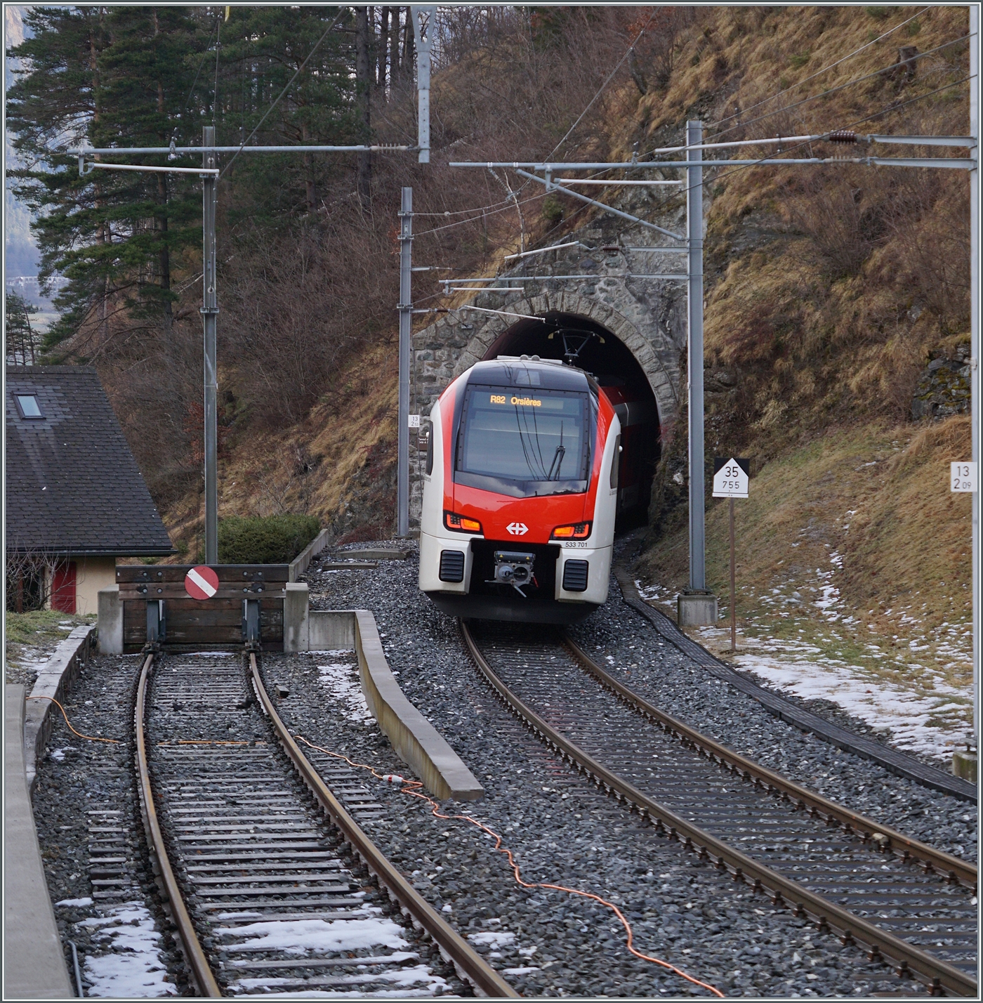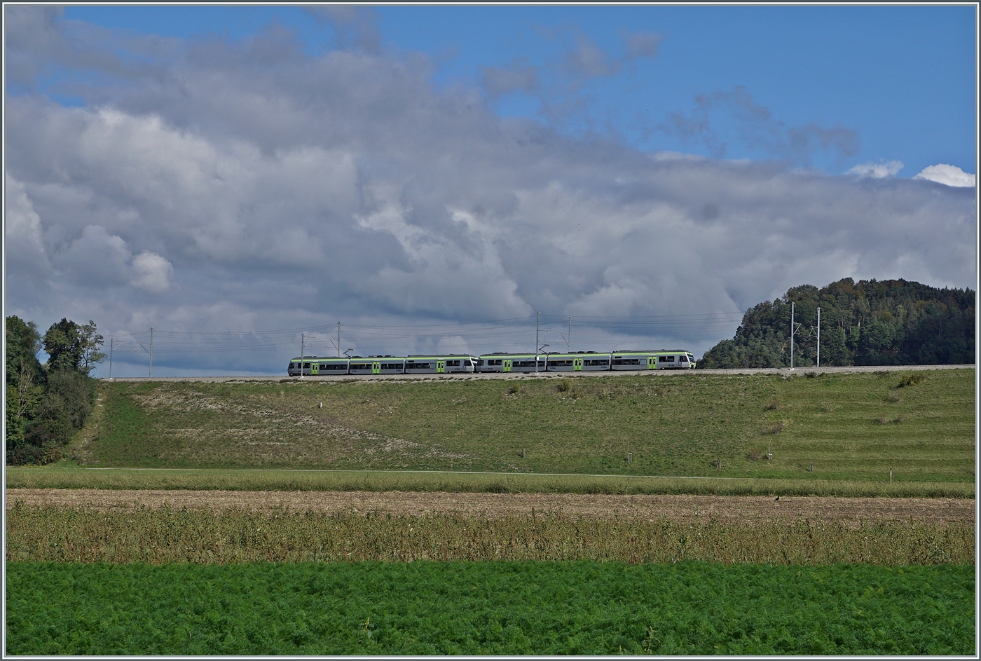 Der BLS RABe 525 028 ist als RE bei Enge auf der Fahrt nach Bern.