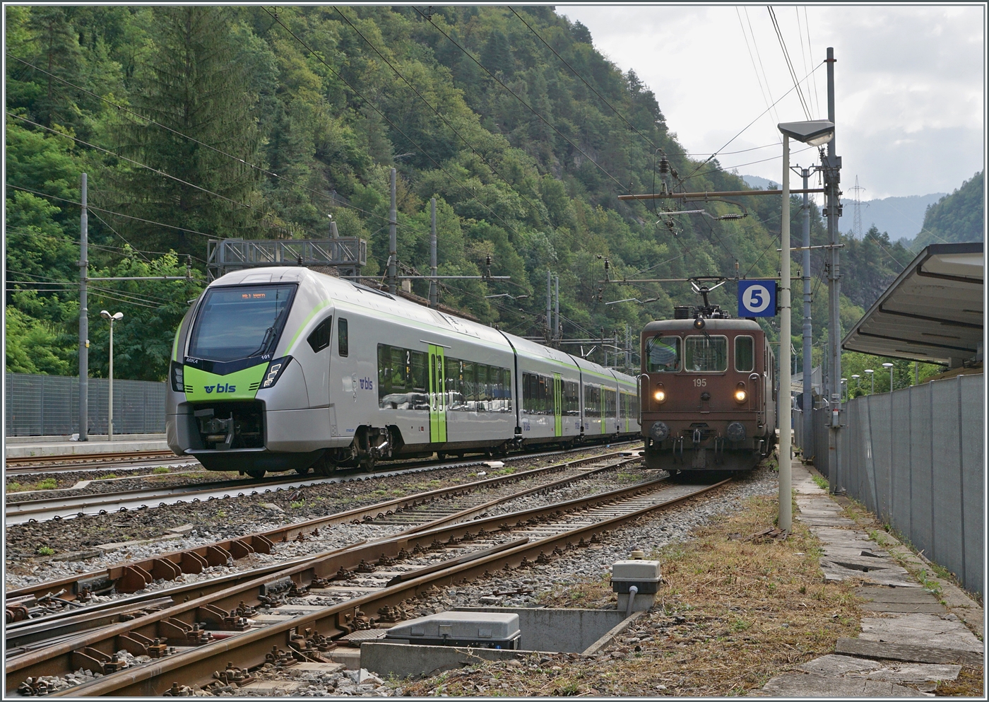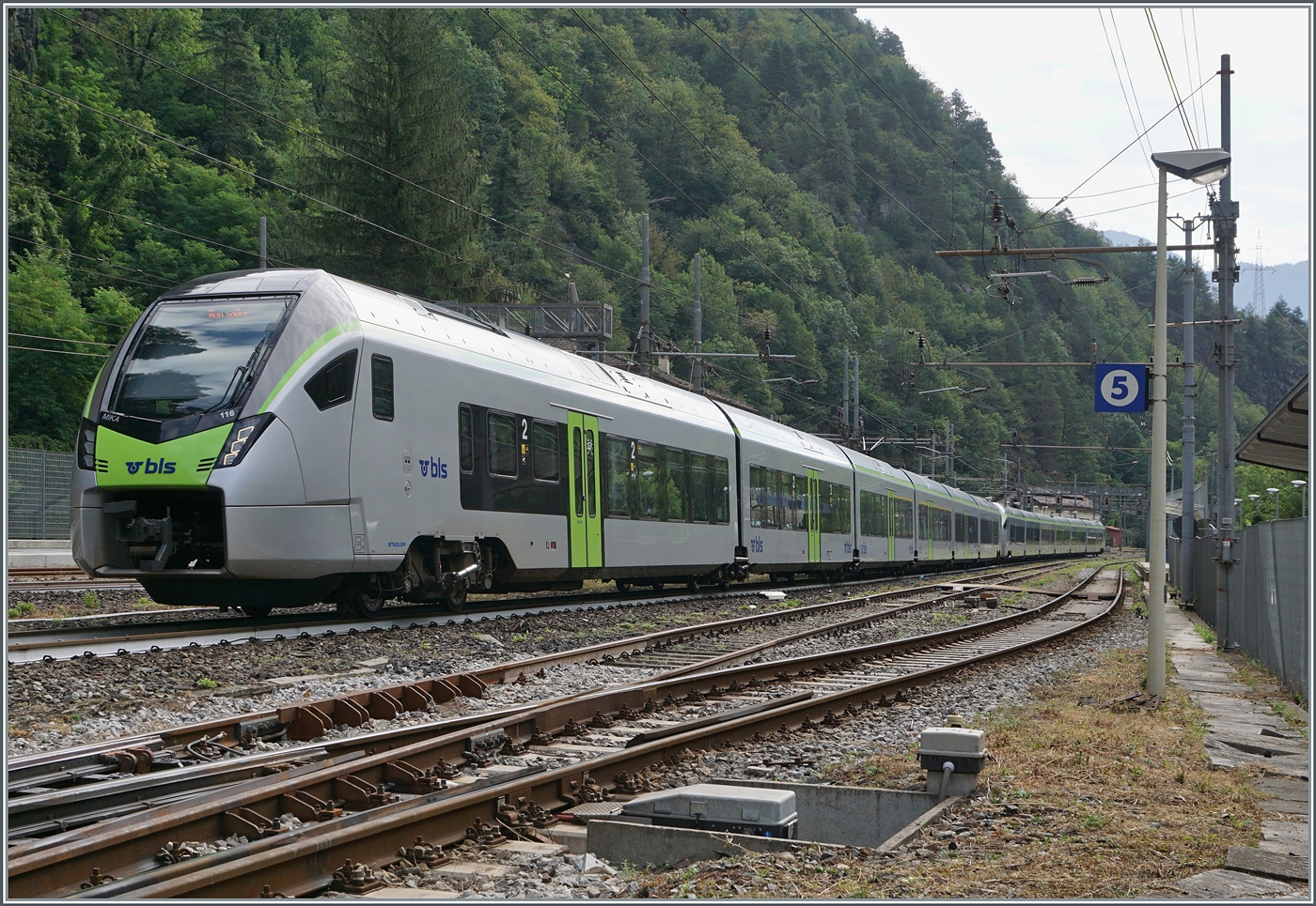20 % mehr Reisende - Region Alpes kommt an ihre Grenzen und hat deshalb bei der BLS einen RABe 528 MIKA gemietet, der von MO bis FR zwei bis drei Umläufe abdeckt und so die dafür frei werdenden Domino-Züge zur Verstärkung anderer herangezogen werden. Das Bild zeigt den BLS RABe 528 109 in St-Gingolph der als R 91 6125 auf die Abfahrt nach Brig wartet.