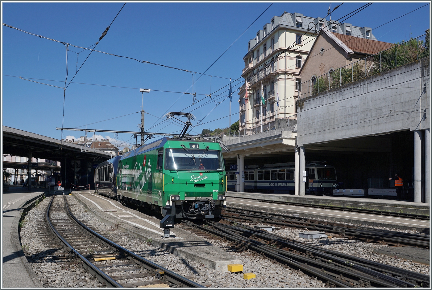 Kurz nach Les Avants ist ein CEV MVR ABeh 2/6 (Serie 7500) als Regionalzug auf dem Weg nach Montreux.