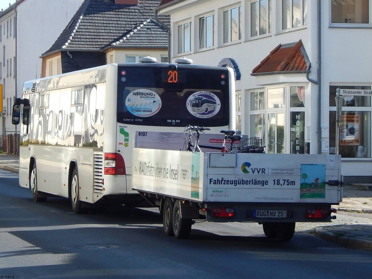 Setra 415 NF mit Hänger der Kraftverkehrsgesellschaft mbH Ribnitz-Damgarten in Ribnitz-Damgarten.