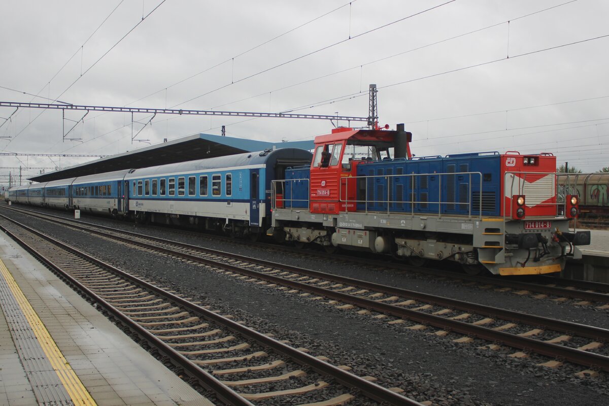 CD Verschiebelok 714 230 steht am 12 Juni 2022 in Praha hl.n.