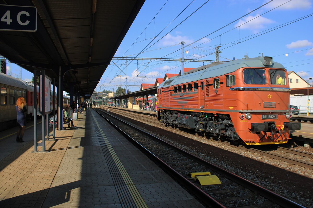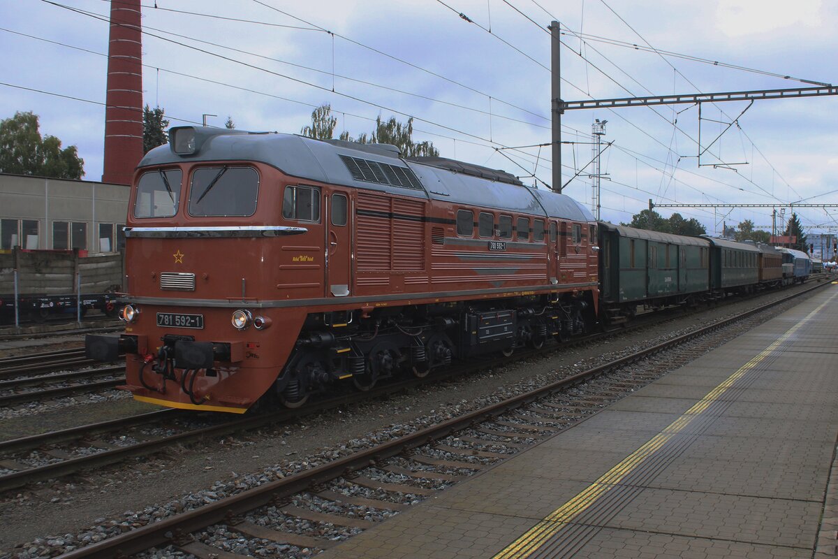 Am Freitag 26 September -ein Tag vor das STEAM56 Spektakel richtig entbrannte- rangiert KDS 781 592 einige MUseumswagen ins Bw von Benesov u Prahy und wird von Dützende Eisenbahnfans gerne beobachtet. Der Freitag vor das STEAM5x Wochenende treffen die eingeladene, teilnehmende Loks und ZÜge in Benesov u Prahy ein und müssen irgendwie ins Bw verschoben werden, was immer zum Fotochancen führt -so lange die Sonne nicht scheint, weil es dann Alles ins Gegenlich passiert. Leon Schrijvers