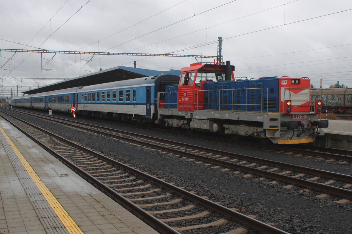 Am 12 Juni 2022 knöttert 712 217 mit der Leergarnitur von der Cyklohrady aus Praha hl.n. aus.
